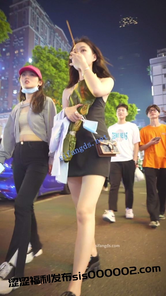 •  黑色露肩裙靓女,逛街买小吃被前后CD窄内。
