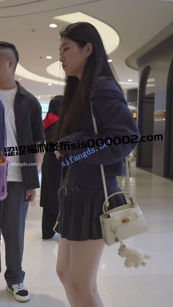 •  百褶裙美女逛商场,细内衬挡不住微透蕾丝边内裤。